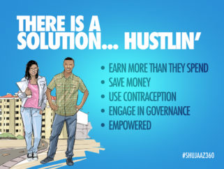 We already know that hustling is a skill that can be learned, and that our Shujaaz multi-media platform is doing well at building the propensity for success of our young audiences and unlocking their hustla capacity. Two different studies (by the Universities of Tulane and North Carolina) were published in 2018 which tracked groups of young Kenyans for several years. Both found that youth who engage with Shujaaz comic books or radio shows and facebook pages enjoy multiple benefits that can be attributed directly to Shujaaz. More time spent engaging with Shujaaz’s true-life stories, role models and case studies leads to increasing monthly income, more small businesses, delayed pregnancies and marriage, more years in education and above all more “agency” – young people’s confidence that they have control over their lives.